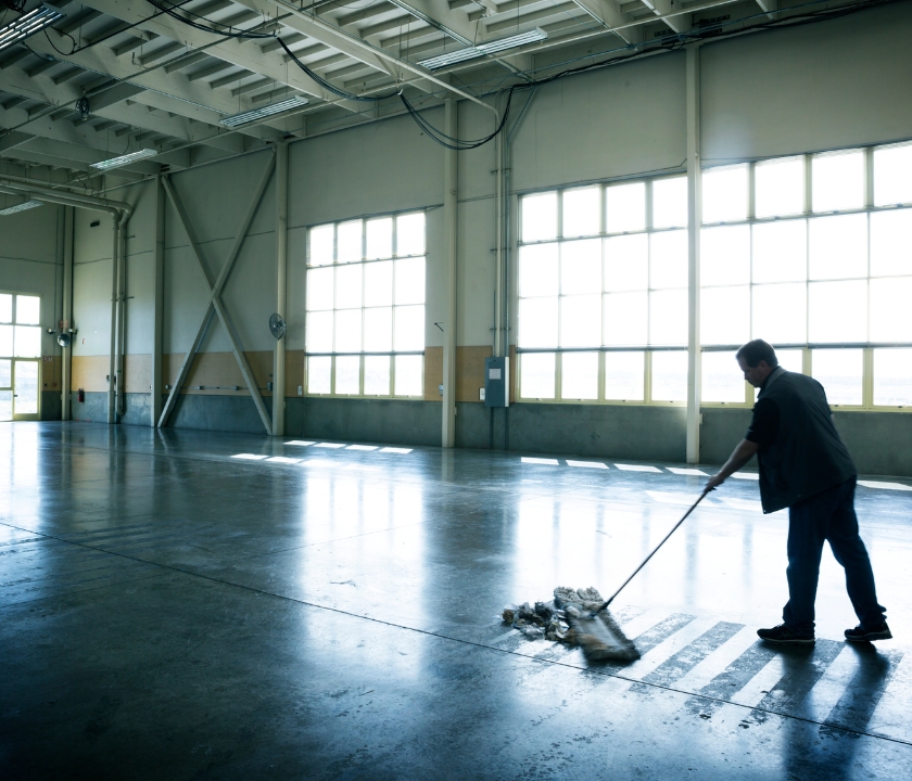 - Warehouse floor sweeping, scrubbing, and degreasing